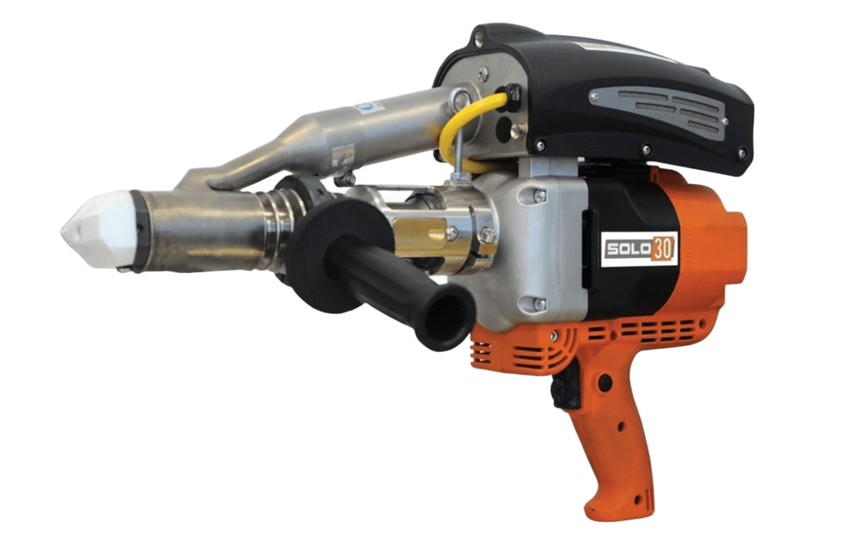 Extrusora de alto rendimiento utilizada para soldadura de termoplásticos en proyectos industriales, ideal para trabajos continuos y de gran escala.